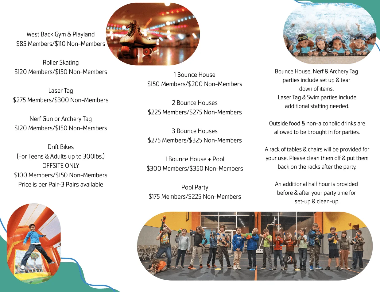 Experience the thrill of roller skating with our rental package. Skates and skate walkers are provided, and you can bring your own music within YMCA guidelines.